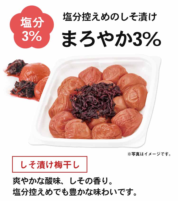 塩分控えめでも豊かな味わいの減塩しそ漬け梅です。