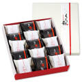 白と黒のシックな包装が喜ばれ、お客様から「慶びの梅酌と黒糖の梅を詰めあわせてほしい」という声が寄せられ、生まれたのが「ちどり梅」です。